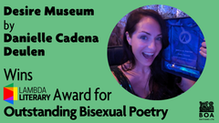 BOA Editions is thrilled to announce that Danielle Cadena Deulen's poetry collection, Desire Museum, has won the 2024 Lambda Literary Award (Lammy) for Outstanding Bisexual Poetry. This prestigious accolade was awarded during the 36th Annual Lambda Literary Awards ceremony held on June 11, 2024, at Sony Hall.