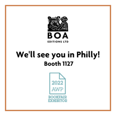 BOA is thrilled to be back at AWP this year at Booth 1127! Stop by to see us, get an early (and signed) copy of one of our forthcoming spring books and recent backlist, and grab a sticker! As we prepare, we wanted to share our signing schedule and all of our authors' panels here. AWP will be held from March 23–26, 2022 in Philadelphia, PA in the Pennsylvania Convention Center. More details can be found on AWP's website. Author Signings at the BOA Booth Erika Meitner, Useful JunkThursday, March 24, 2022, 10:00 am to 10:45 am Justin Jannise, How to be Better by Being...